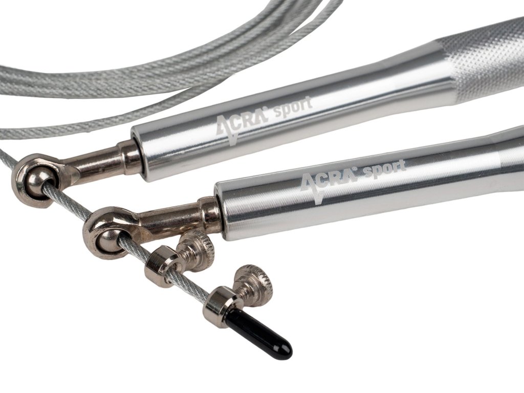 Švihadlo Acra Jump ve stříbrném provedení je ideální tréninková pomůcka pro bojové sporty i všestrannou kondiční přípravu. Díky lehkým hliníkovým rukojetím s protiskluzovým povrchem padne skvěle do ruky i při intenzivním tréninku.