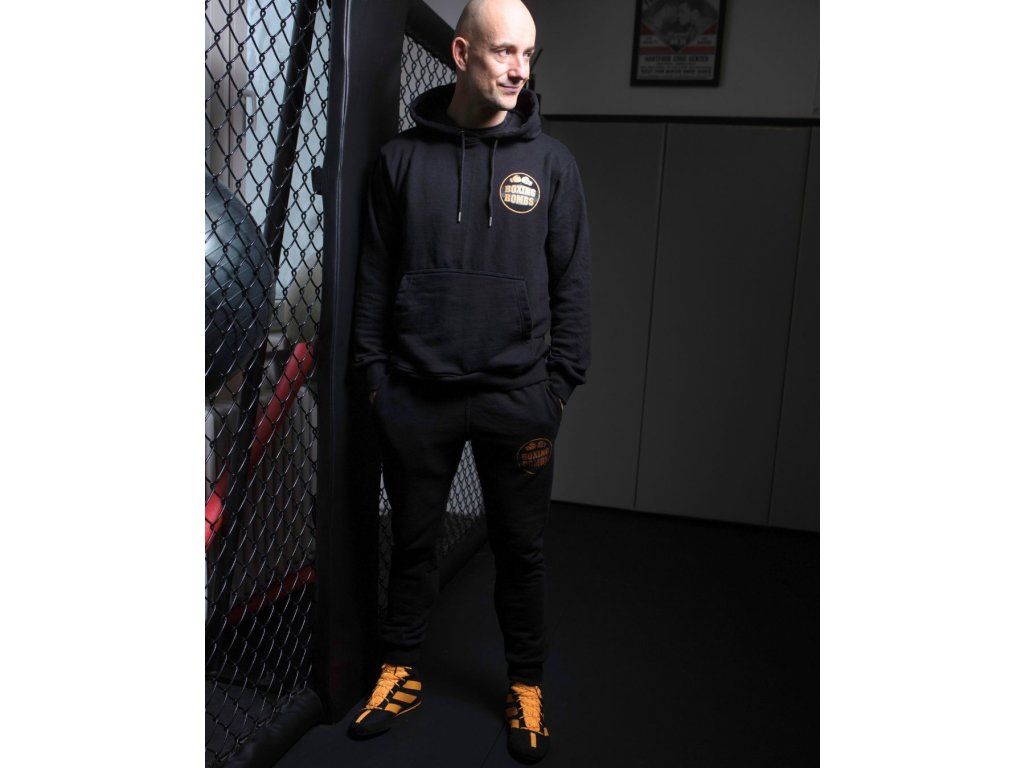 Minimalistický vzhled doplňuje logo BoxingBombs na hrudi a na nohavici, které dává soupravě sportovní charakter.