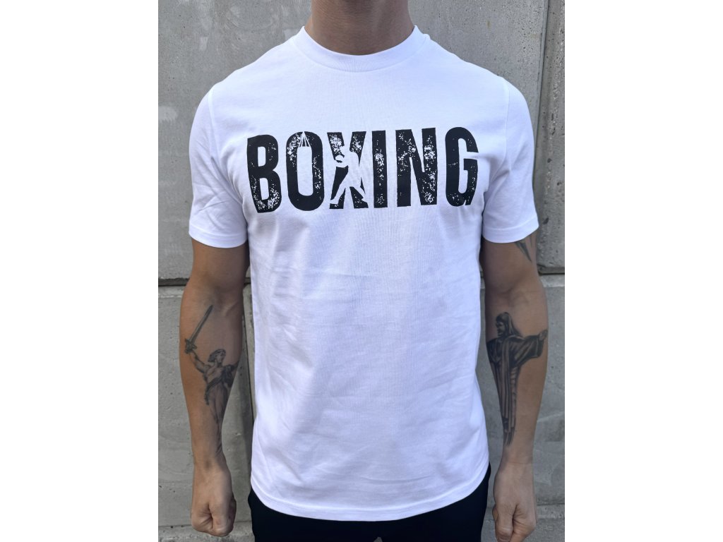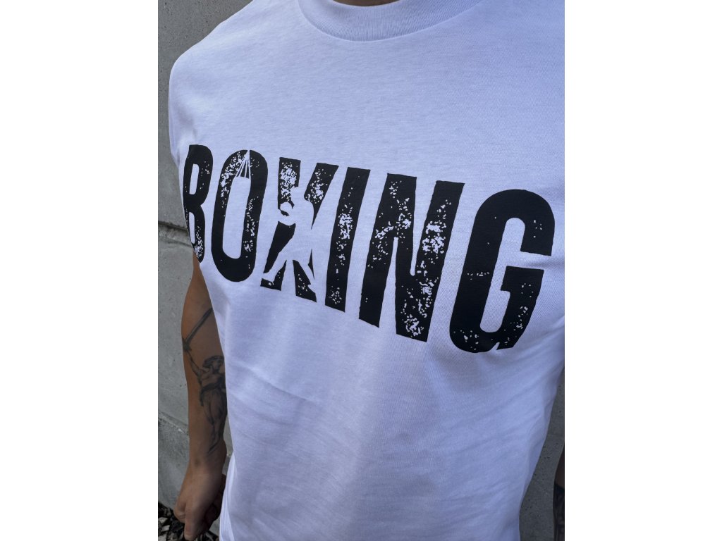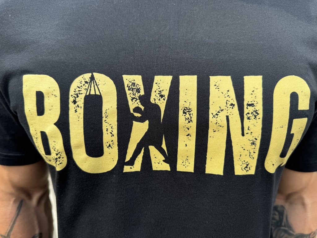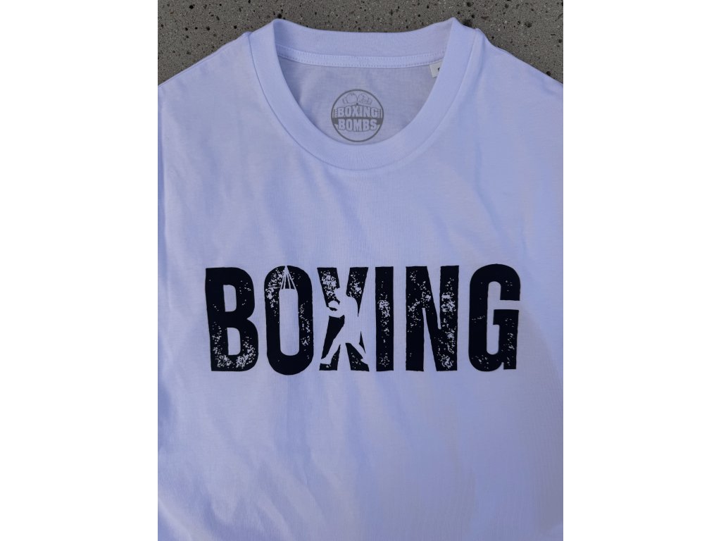 Bavlněné tričko autorské kolekce BoxingBombs ideální pro volný čas! Jednoduchý a stylový potisk s nápisem "Boxing" v ošoupaném designu a s motivem boxera v nápisu. Skvělá volba jak pro volný čas, tak pro trénink pro ty, kdo upřednostňují 100 % přírodní materiály před funkčními technologiemi.