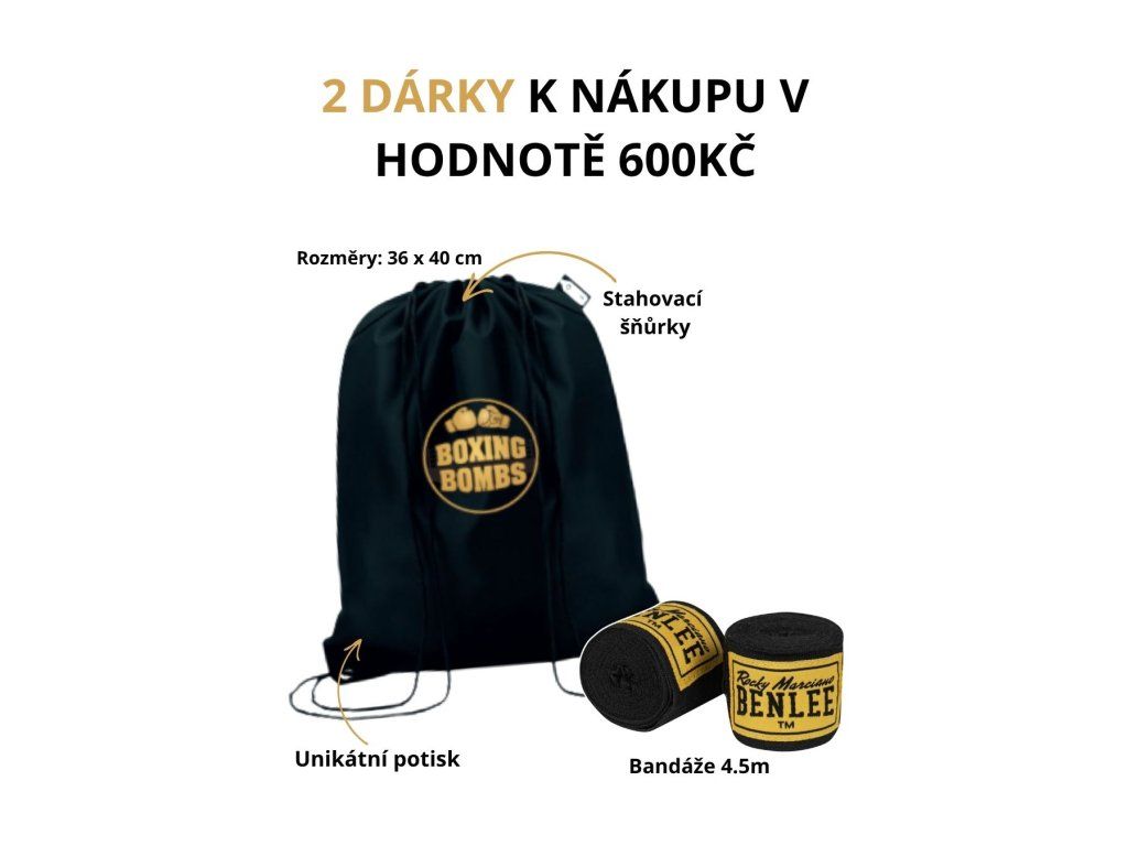 Součástí balení je lehký stahovací vak Boxing Bombs a bandáže 4,5 m zdarma.