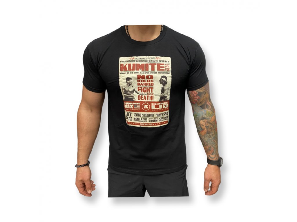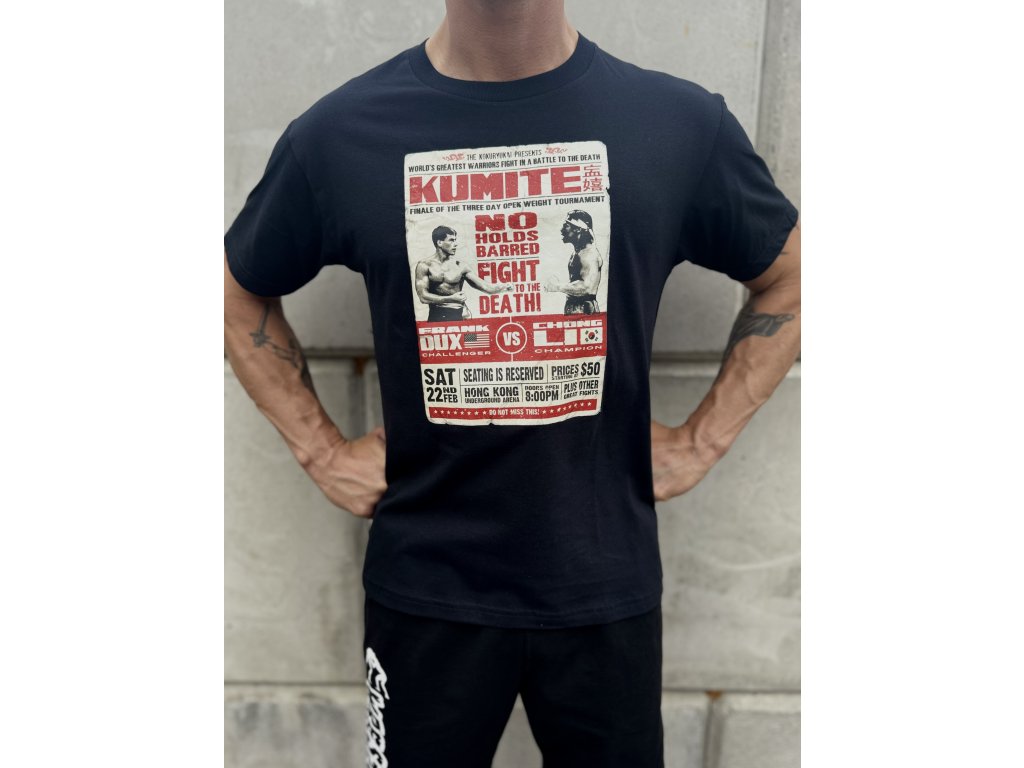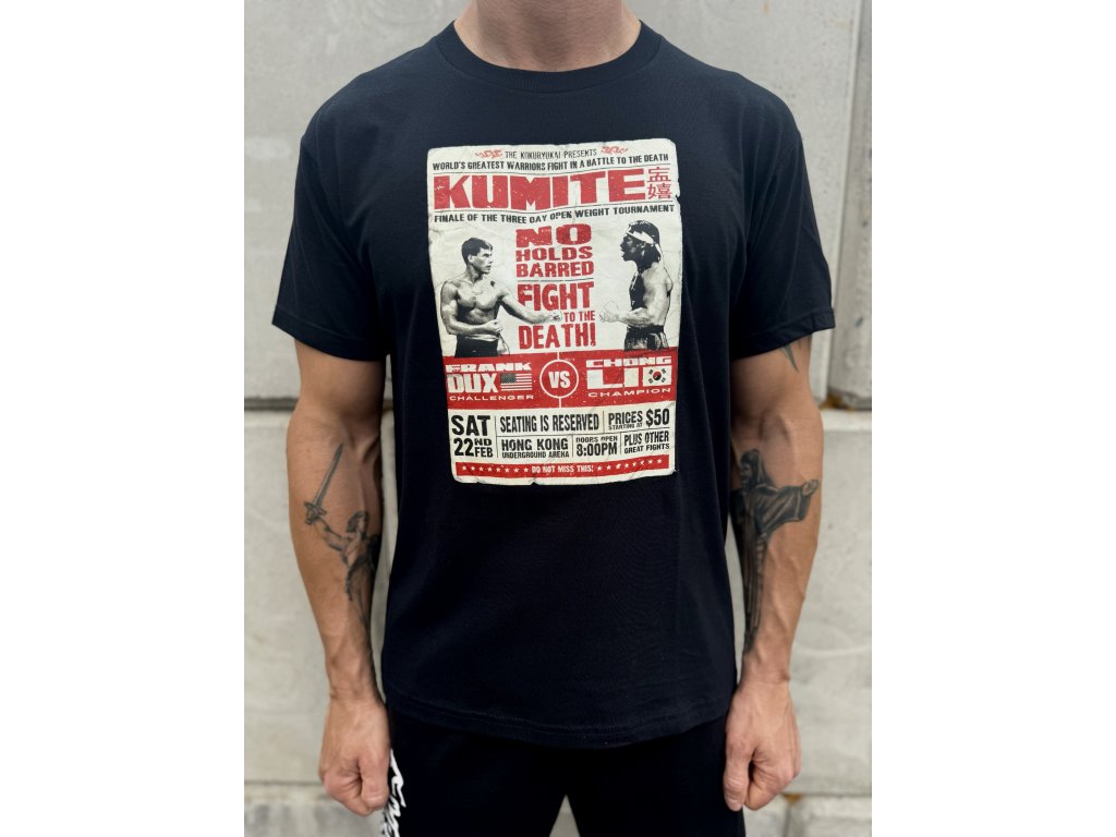 Kumite je důležitou součástí tréninku karate a soutěžní disciplínou. Zahrnuje aplikaci bojových technik a strategií v předem dohodnutých kombinacích nebo ve volném boji. Kumite vyžaduje fyzickou sílu, rychlost, reflexy a strategické myšlení. Vyberte si i vy tričko s motivem z filmu Blood Sport.