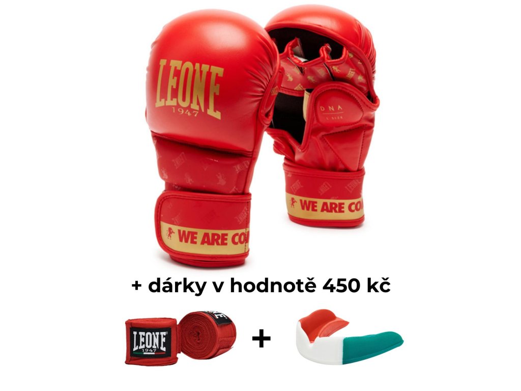 Leone MMA set - MMA rukavice Leone DNA GP144 červené +bandáže +chránič zubů