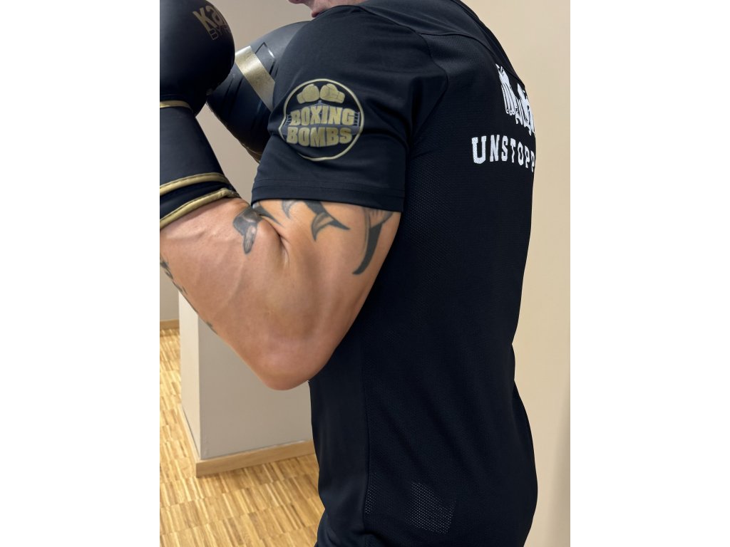 Design potisku byl vytvořený v ČR. Motiv všem ukáže, že patříte mezi příznivce boxu, motivační nápis na zádech vám připomene, že máte dát do svého tréninku vše a budete nezastavitelný. Logo na rukávu je decentní, přitom dá vědět, že patříte do naší Boxing Bombs family!