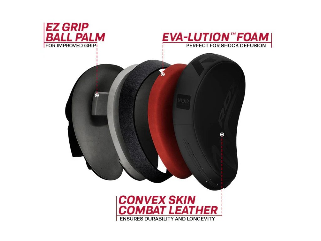 Hledáte špičkové lapy na box, které vám poskytnou maximální ochranu a komfort během tréninku? RDX T15 Noir jsou tím pravým řešením. Díky ručně vyrobené ConvEX Skin Combat kůži jsou tyto lapy mimořádně odolné a připravené na každodenní tvrdé nasazení. Nylonové prošití navíc zajišťuje dlouhou životnost i při intenzivním tréninku.