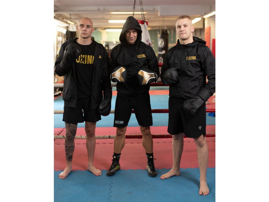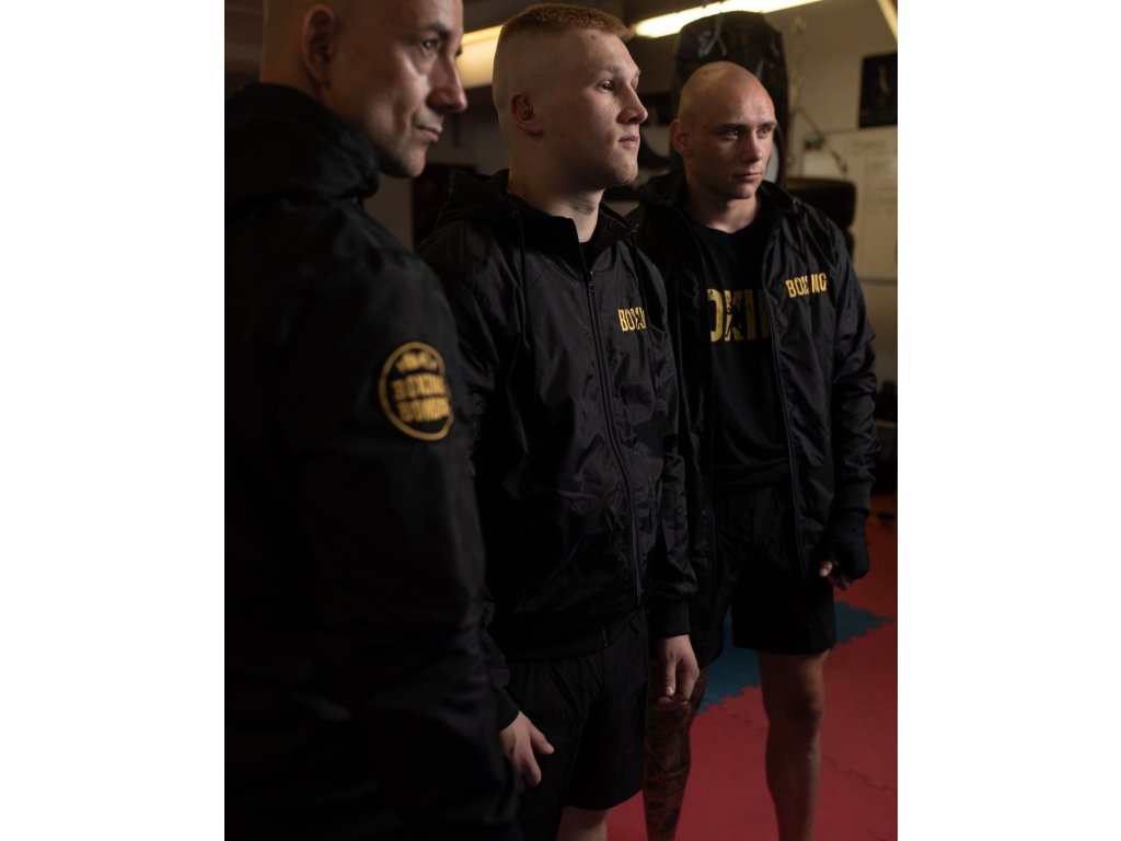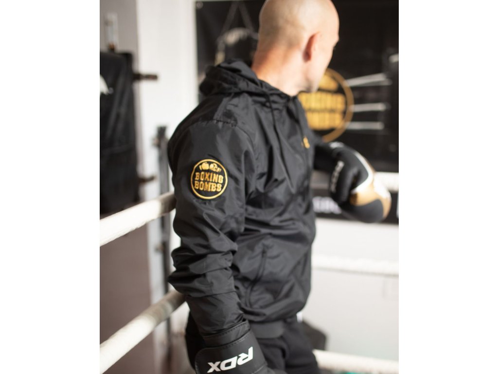 Stylová a funkční – přesně taková je šusťáková bunda z kolekce BoxingBombs. Celočerné provedení doplňuje zlatá výšivka „Boxing“ na levé straně hrudi a výrazné logo Boxing Bombs na pravém rukávu.