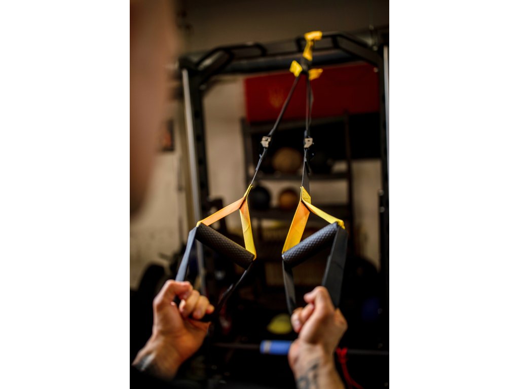 Závěsný posilovací systém je skvělým nástrojem pro váš domácí i venkovní trénink. Tento systém vám umožní procvičit svaly celého těla kdykoliv a kdekoliv. Jednoduché upevnění pomocí karabiny vám dává nekonečné možnosti – připevněte ho na žebřiny, cvičící věž, hrazdu, ve venkovním fitness nebo dokonce na větev stromu.